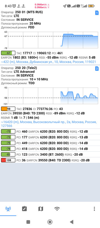 У band 20 гораздо лучше сигнал, а смартфон цепляется за band 40...
